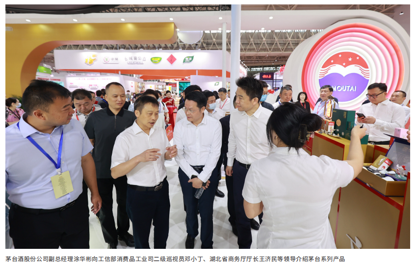 本届食博会开幕仪式由湖北省商务厅厅长王济民、工信部消费品工业司二级巡视员邓小丁、湖北省经信厅副厅长周开斌、湖北省农业农村厅总农艺师李宗友、中国商业联合会副会长傅龙成、中国食品工业协会副会长王琪和茅台酒股份有限公司副总经理涂华彬共同启动。湖北省商务厅二级巡视员刘道伟致开幕词。武汉市商务局副局长刘亮出席开幕式和巡馆活动。